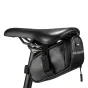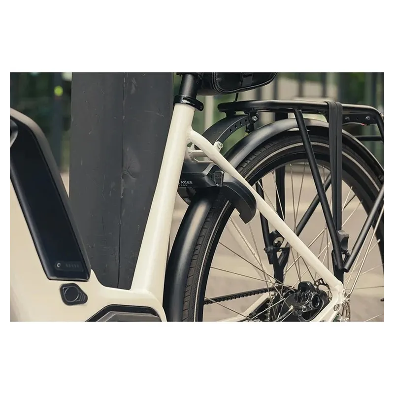 Ce modèle se distingue aussi par la présence d’une sacoche de selle incluse, pratique pour transporter le câble ou d’autres petits accessoires, évitant d’encombrer le cycliste.