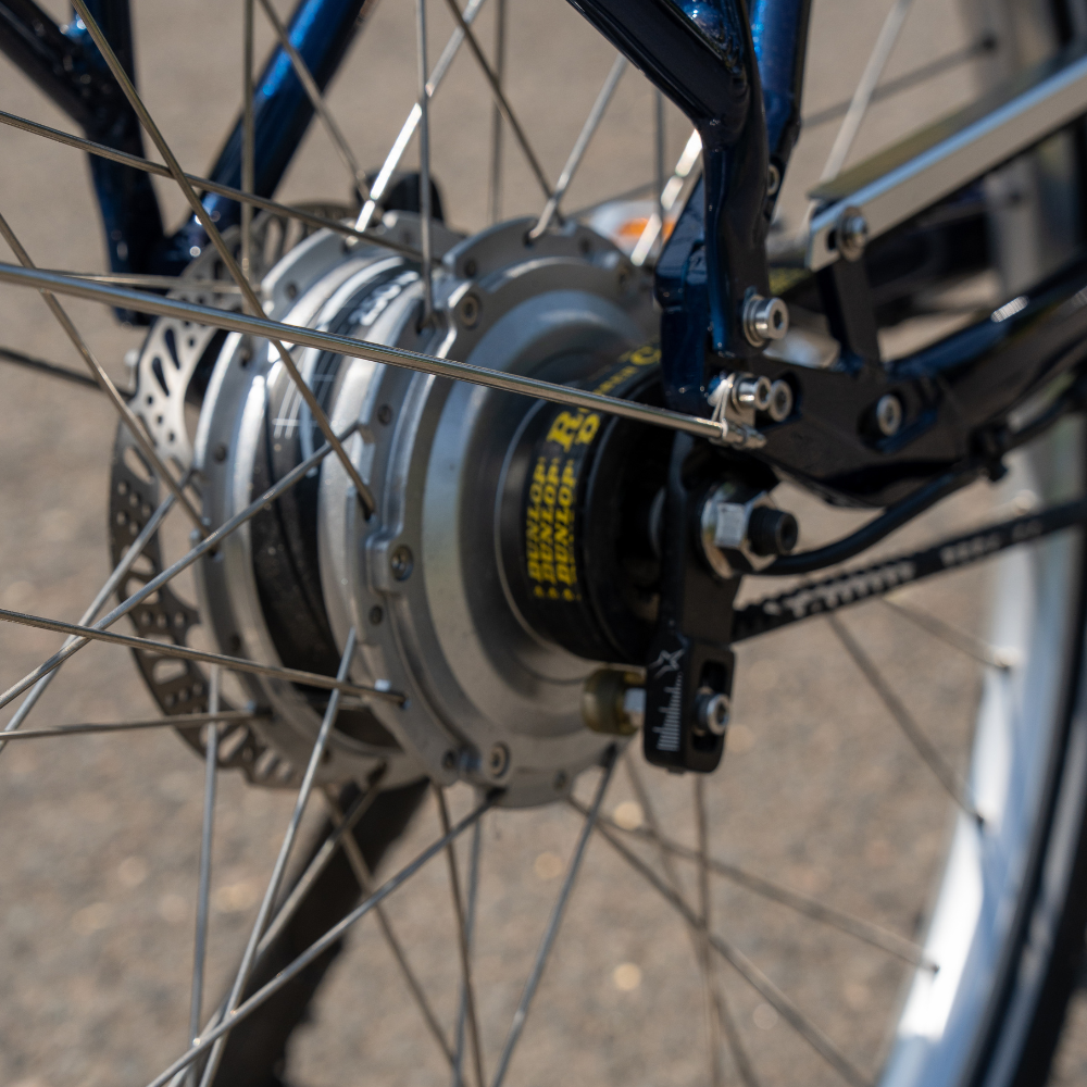 Contrairement aux vélos classiques, il n’y a pas de vitesses à changer : tout est géré par l’électronique. Le pédalage est aussi rendu plus fluide grâce à un système mécanique intégré, et la transmission par courroie limite l’entretien.