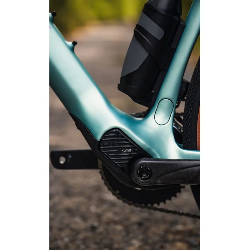 Le vélo est équipé du moteur central BHZ by SEG Automotive, particulièrement compact avec seulement 2,1 kg. Il délivre un couple maximal de 65 Nm et une puissance nominale de 250 W, permettant une assistance fluide et progressive jusqu’à 25 km/h. Ce système offre une sensation de pédalage naturelle tout en facilitant les montées et les longues distances.