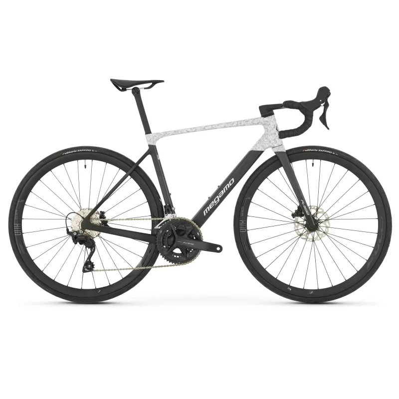 Vélo de route carbone Megamo Raise 20 à 8,6 kg, groupe Shimano 105 Di2 24 vitesses, disques hydrauliques et roues Fulcrum Racing 800 DB pour les cyclosportives et sorties club exigeantes.