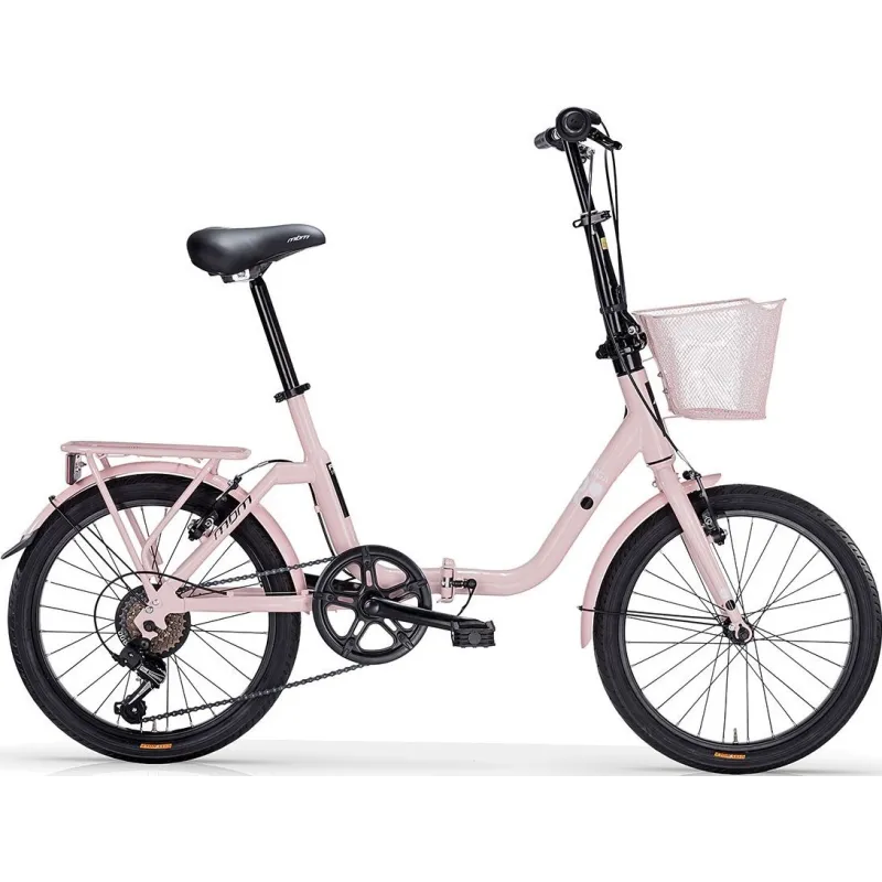 Vélo pliant en acier équipé de 6 Vitesses Shimano Revoshift, porte bagage et panier avant
