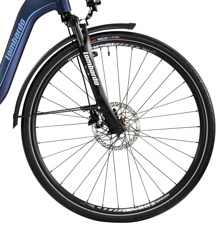 Il est équipé d’une fourche suspendue SR Suntour NEX-E25 avec 63 mm de débattement, qui améliore le confort sur routes et chemins. Sa motorisation Shimano STEPS E5000 (250 W) est à la fois douce et silencieuse, accompagnée d’une batterie de 504 Wh offrant jusqu’à environ 100 km d’autonomie selon l’utilisation et le terrain.