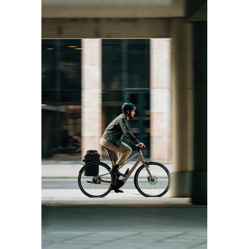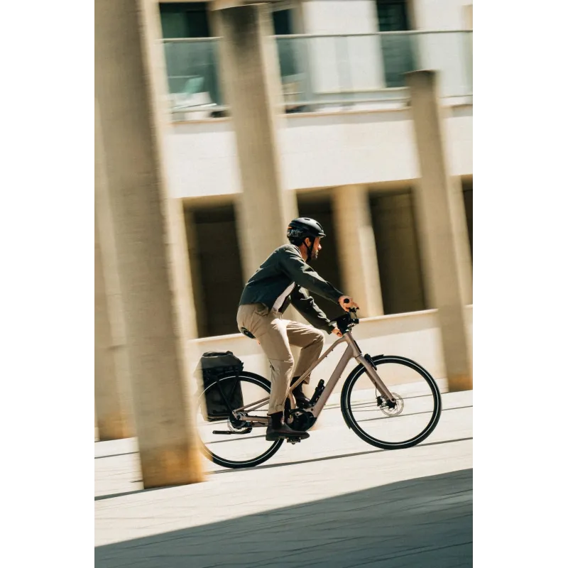 Le moteur est alimenté par une batterie intégrée de 420 Wh, discrètement logée dans le cadre afin de préserver l’esthétique épurée du vélo. Cette capacité permet de bénéficier d’une autonomie adaptée aux déplacements quotidiens en ville, tout en conservant un vélo équilibré et maniable. La gestion intelligente de l’assistance permet d’optimiser la consommation d’énergie selon le mode choisi et le type de parcours.