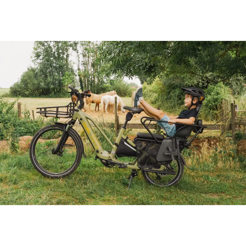 Le Pack Family disponible en option transforme l’Equo 5 Adventure en un vélo cargo pensé pour les sorties familiales. Il comprend des accessoires essentiels pour le transport sécurisé et pratique d’enfants