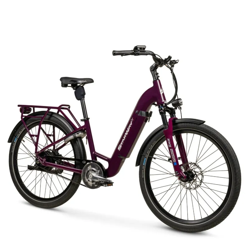 Le vélo électrique Starway SUV city est idéal pour les trajets du quotidiens mais aussi pour les escapades le week end : cadre bas, tige de selle suspendue, ses pneus larges