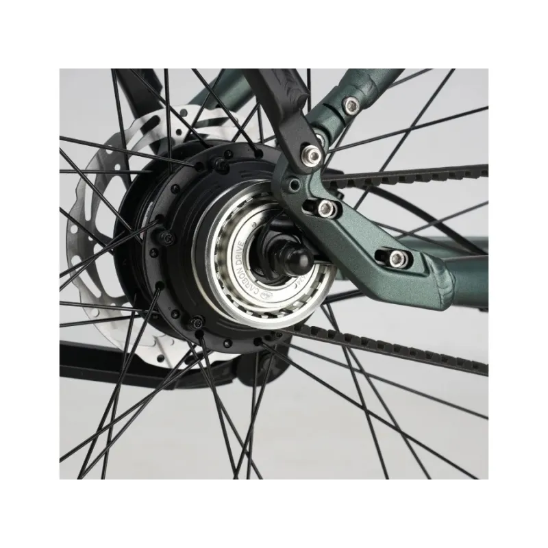 Sa transmission par courroie Gates confirme cette volonté de fiabilité et de simplicité. Fabriquée en polymères renforcés de fibres de carbone, elle remplace avantageusement la chaîne classique : pas de graissage, pas de salissures, et une longévité bien supérieure.