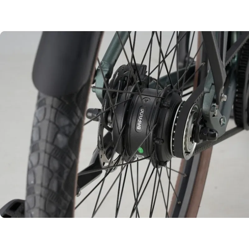 Cette motorisation placée dans le moyeu arrière procure une sensation de poussée directe et naturelle, idéale pour les déplacements urbains rapides.