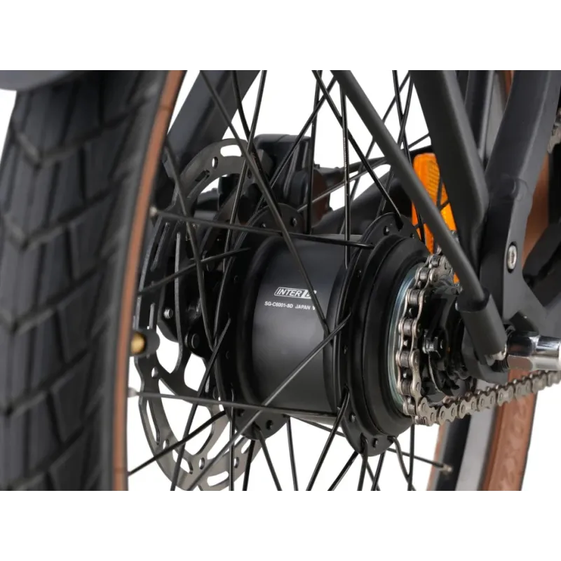 conçu pour offrir un maximum de performance et de praticité dans un format compact. Son moyeu à vitesses intégrées Shimano Nexus 8 assure des changements de rapport parfaitement fluides, tout en offrant une large plage adaptée aussi bien aux trajets plats qu’aux parcours plus vallonnés. Entièrement fermé, ce moyeu ne nécessite aucun entretien et reste protégégé de la saleté et des intempéries, garantissant une fiabilité exemplaire au quotidien.