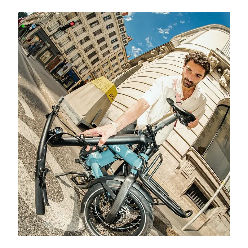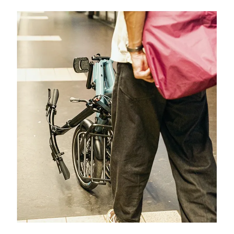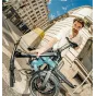 Grâce à sa fourche en carbone, il affiche un poids plume de 18,5 kg* (sans pédales), sans compromis sur la robustesse ni le confort. Son système de pliage breveté Loop™ avec charnières autobloquantes permet un pliage simple et rapide, tandis que la courroie Gates® CDN assure une transmission silencieuse et sans entretien.