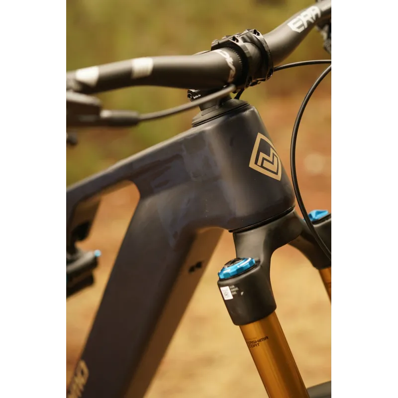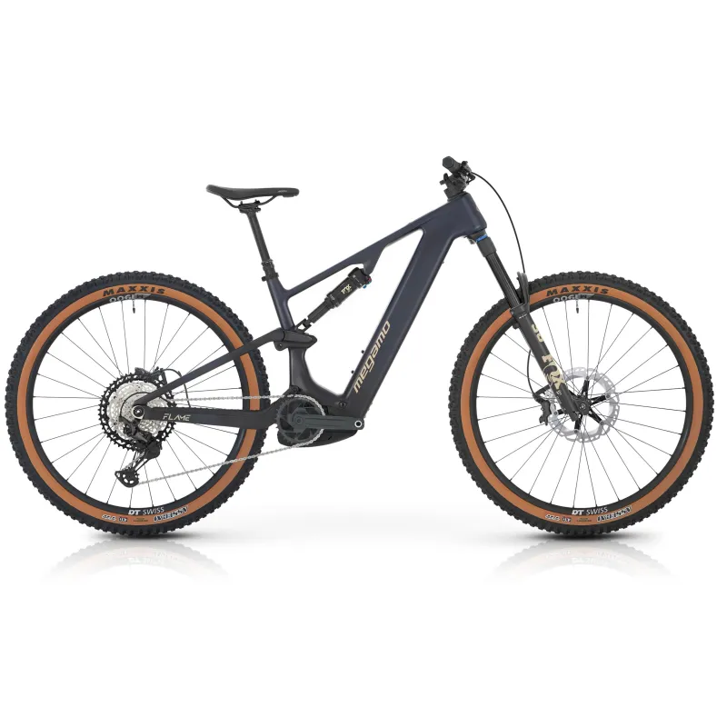 Le Megamo Flame CRB 07 est un VTT électrique haut de gamme conçu pour l’enduro et les sorties engagées en montagne. Il se distingue par un cadre entièrement en carbone qui intègre parfaitement une batterie Bosch de 800 W, offrant une grande autonomie pour les longues randonnées.
