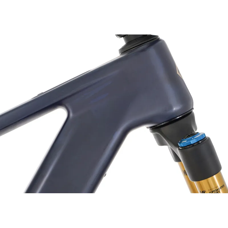 Avec sa géométrie moderne (angle de direction ouvert à 65°, tube de selle redressé à 76,5°), ce vélo combine stabilité en descente et efficacité en montée.