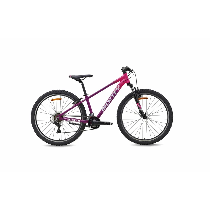 Le Monty KX8 est un VTT conçu pour les enfants et adolescents, avec un cadre en aluminium léger et résistant, idéal pour les premières sorties VTT ou les parcours variés. Il est équipé d’une fourche suspendue avec environ 60 mm de débattement, qui absorbe les irrégularités du terrain pour un meilleur confort.