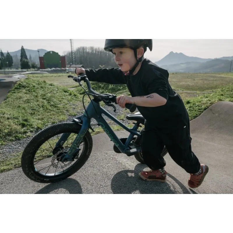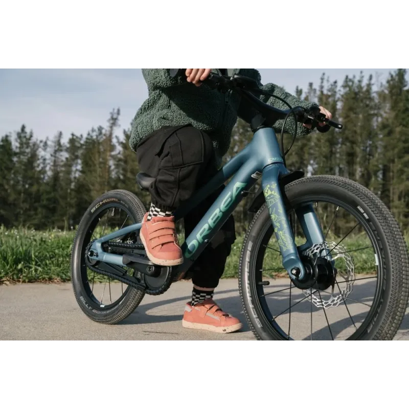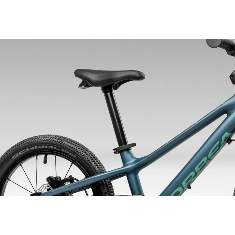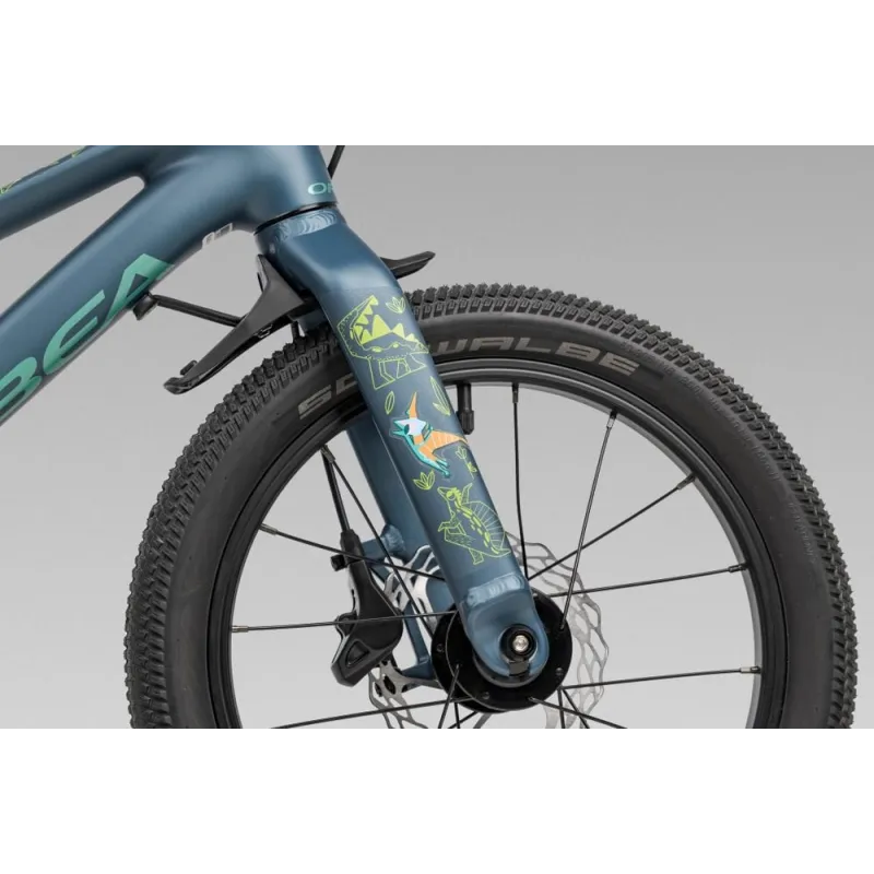 Son cadre Orbea Kimu 16 et sa fourche dédiée assurent stabilité et maniabilité. Le carter de chaîne intégral protège l’enfant des projections et des contacts avec la transmission. Les freins à disque hydrauliques Clarks M2 avec leviers adaptés aux enfants offrent un freinage puissant et sécurisé.