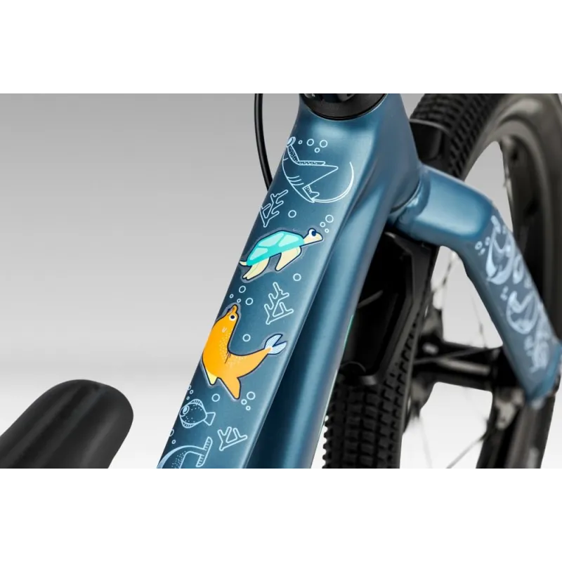 Le Orbea Kimu 16 est livré avec des éléments de personnalisation, des pédales avec réflecteurs, des garde-boue Orbea avec limiteur de direction et une protection de chaîne complète pour un usage quotidien sûr et ludique.