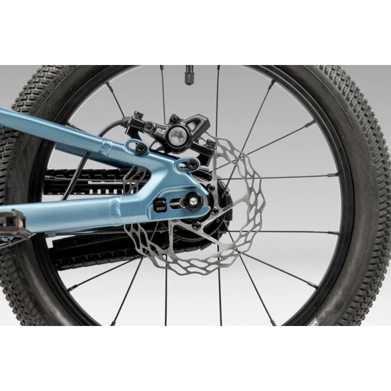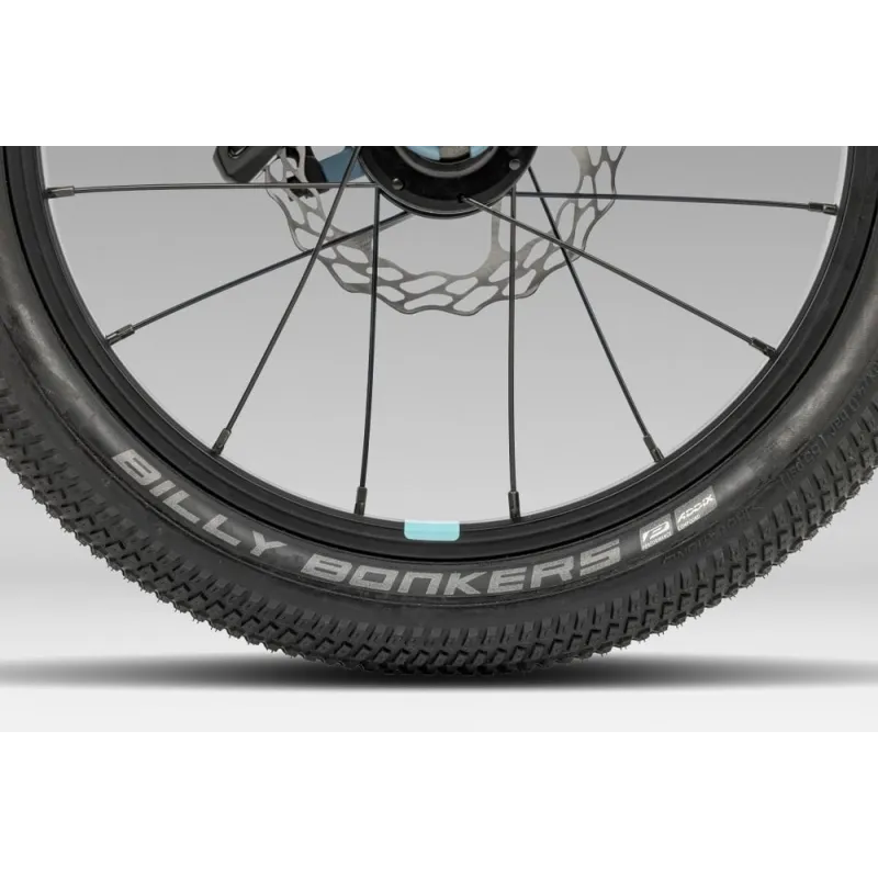 Équipé d’une transmission simple et fiable (plateau 28 dents, pignon 18 dents, chaîne KMC), ce vélo facilite le pédalage. Les roues aluminium 16 pouces associées aux pneus Schwalbe Billy Bonkers 16x2.00 garantissent adhérence et confort sur différents terrains.