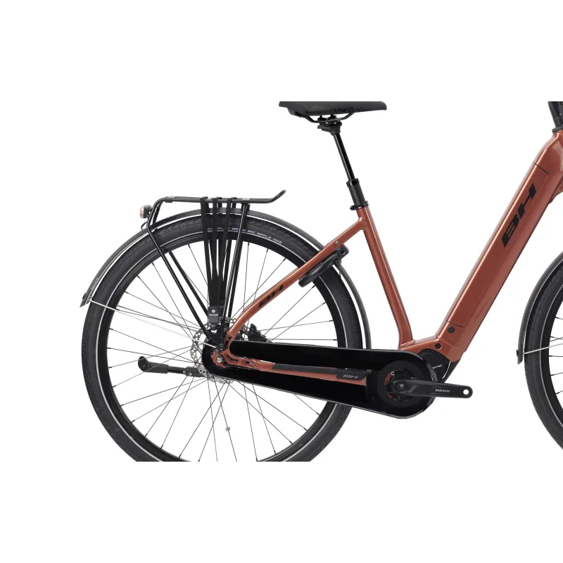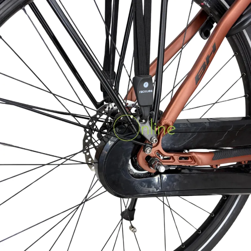 Le système de freinage hydraulique Shimano MT200 avec disques de 180 mm assure une sécurité maximale, tandis que les roues BH Lite Mach1 260 avec pneus Schwalbe Big Apple 28x2,0 apportent confort, adhérence et stabilité sur tous types de surfaces. Le vélo est également équipé de nombreux accessoires pratiques : phares B&M, garde-boues Curana Clite, porte-bagages Racktime Light-it, béquille intégrée et système de sécurité Axa Block, pour un usage urbain complet et fonctionnel.