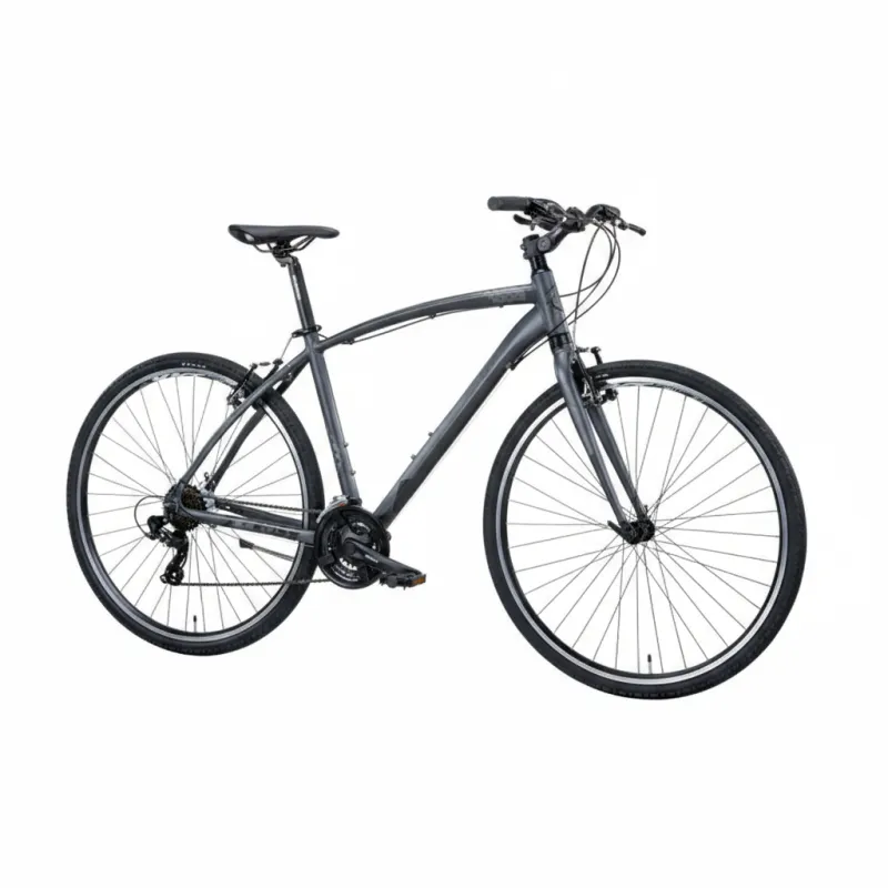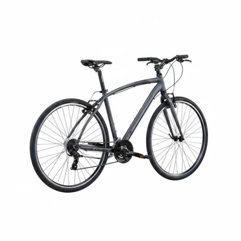Son cadre en aluminium 6061 offre robustesse et légèreté, associé à des roues 28 pouces avec jantes aluminium et pneus 700x40 adaptés aux parcours mixtes.